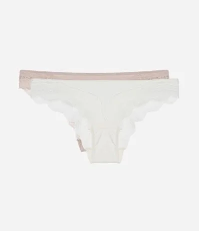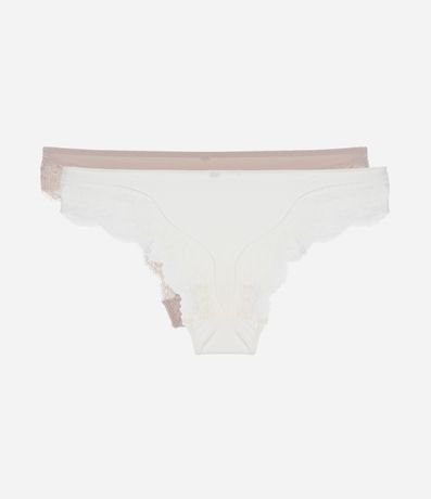 Ref: Kit com duas calcinhas femininas confeccionadas em microfibra. A peças modelo biquíni, são lisas e detalhe de renda.