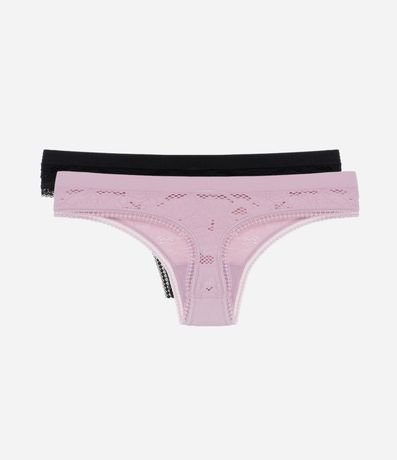 Ref: Kit com 02 calcinhas biquíni feminina em poliamida. Peças possuem modelo fio dental, cintura elástica e detalhes de renda trabalhada.