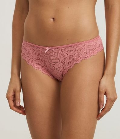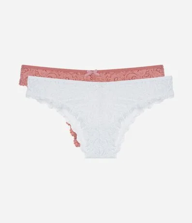 Ref: Kit com duas calcinhas biquíni confeccionadas em renda floral de poliamida.
