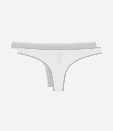 Kit com 02 calcinhas confeccionadas em algodão certificado através de boas práticas ambientais. Possuem modelo fio com viés contrastantes.