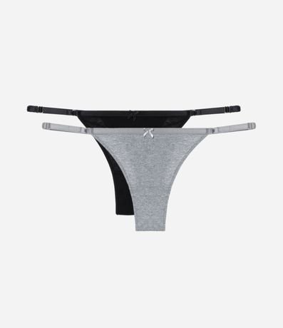 Kit com duas calcinhas de algodão modelo biquíni string com laterais ajustáveis.