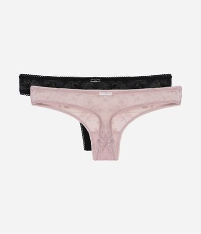 Ref: Kit com 02 calcinhas biquíni fio confeccionadas em laise floral.