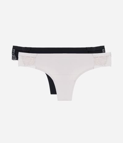 Kit 02 Calcinhas Biquíni Fio em Microfibra com Detalhe de Renda