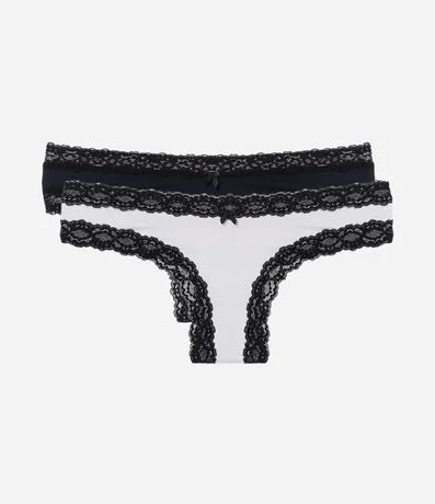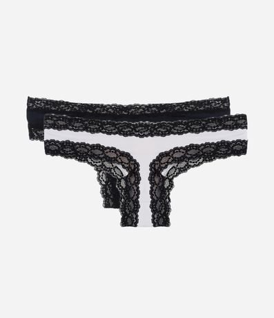 Ref: Kit com duas calcinhas de microfibra com renda no cós e nas cavas.