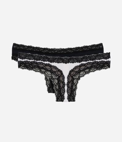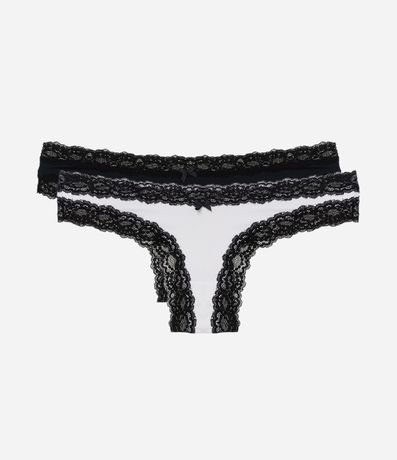 Kit 02 Calcinhas Biquíni Fio em Microfibra com Renda nas Cavas