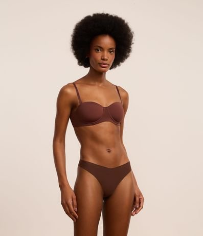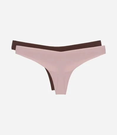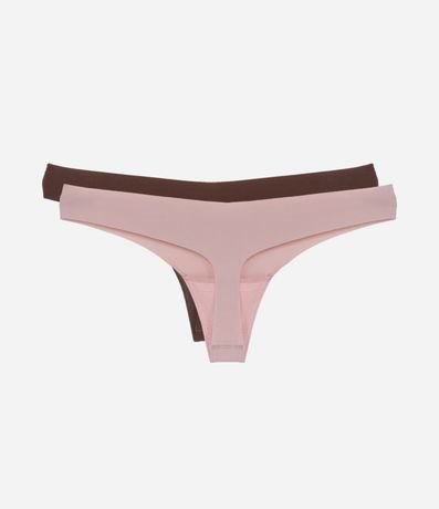 Ref: Kit com duas calcinhas confeccionadas em microfibra sem estampa. A peça modelo biquíni tem recorte fio no bumbum.