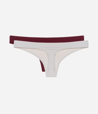 Kit com duas calcinhas modelo biquíni fio, confeccionadas em microfibra. Possuem modelagem cavada, laterais finas, sem costuras aparentes. A parte de trás tem cobertura reduzida, ideal para uso diário e para não marcar sob a roupa.