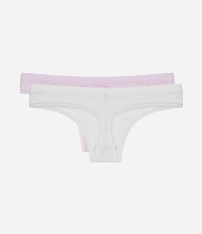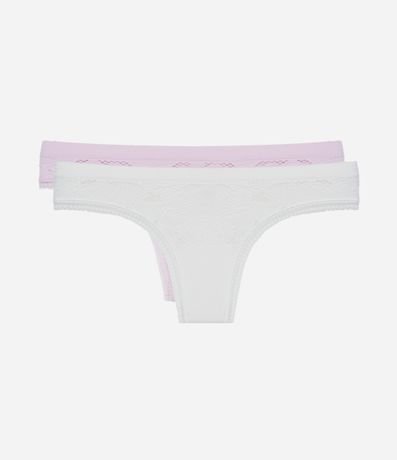 Ref: Kit com duas calcinhas fio dental com textura floral e acabamento seamless.