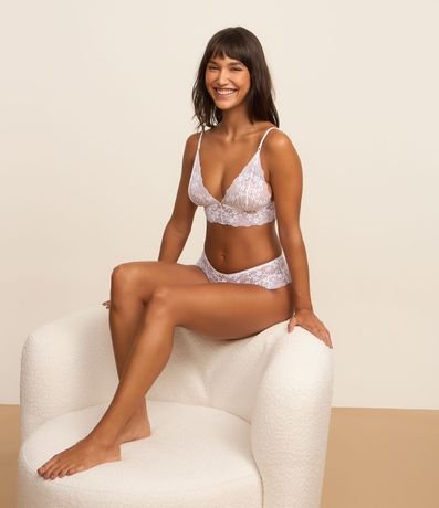 Kit com 02 calcinhas boyshort femininas, confeccionadas em renda, com lateral larga e florzinha no cós.