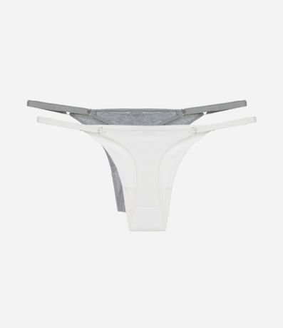 Calcinha feminina modelo string fio confeccionada em algodão mais sustentável. O kit contém duas peças com laterais finas reguláveis e encaixe anatômico que garante discrição sob a roupa.