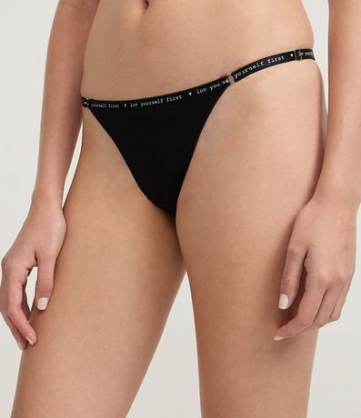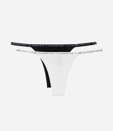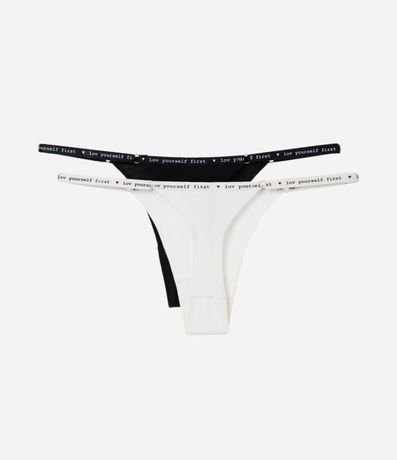 Ref: Kit com duas calcinhas modelo string fio duplo, confeccionadas em algodão certificado através de boas práticas ambientais. Possuem laterais finas com elástico aparente e lettering, modelagem cavada, com parte traseira em fio.
