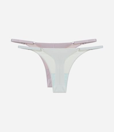 Kit de 02 calcinhas string, fios duplos, confeccionadas em microfibra leve com elástico e moedinha metalizada com logo da marca no cós. Possui alcinhas com reguladores nas laterais.