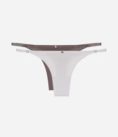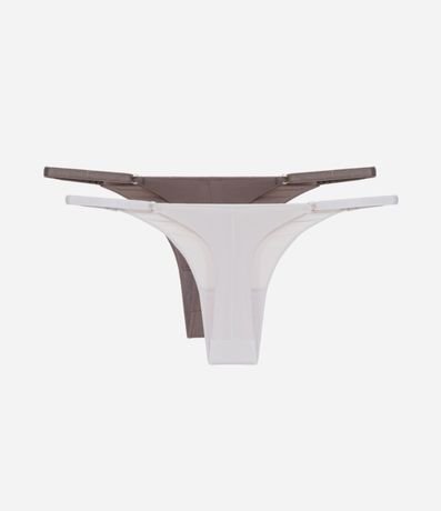 Kit com duas calcinhas string fio com laterais ajustáveis.