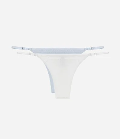 Kit com duas calcinhas string, sem estampa. As peças tem fio duplo no bumbum e laterais ajustáveis.