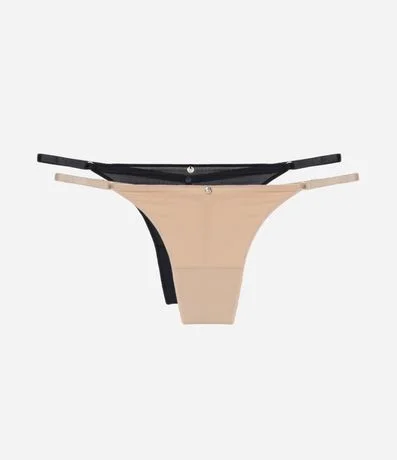 Kit com duas calcinhas string fio dental com laterais ajustáveis.