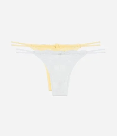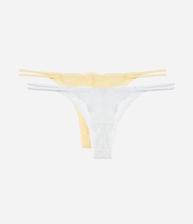 Kit com duas calcinhas de renda modelo string com laterais duplas e fio duplo no bumbum.