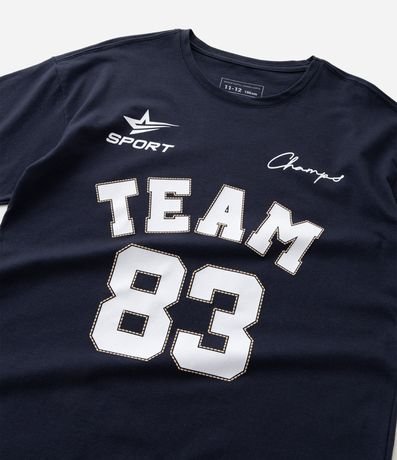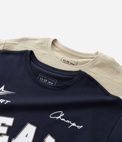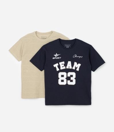 Kit com 02 camisetas infantis no estilo college, confeccionadas em material mais sustentável. Possui gola redonda, mangas curtas e lettering "Team 83".