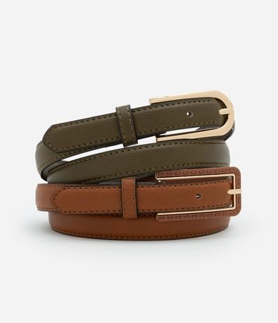 Ref: Kit com 02 cintos femininos confeccionados em material sintético, sem estampa, e com fivelas diferenciadas. Possui largura de 2cm.