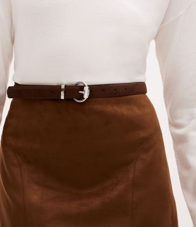 Kit com dois cintos feminino em suede. Cada modelo possui fivela metálica com banho em níquel, passantes reforçados e furos de ajuste. As peças têm largura fina e são ideais para complementar looks casuais ou sociais.