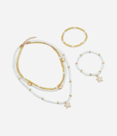 Kit 02 Colar e Pulseiras Infantis com Pingente de Estrela do Mar