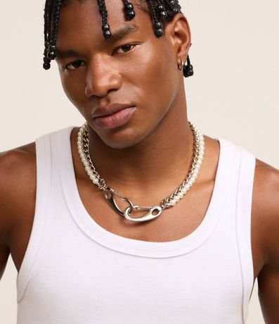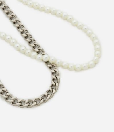 Ref: Acessório de bijuteria, kit 02 colares duplos, 01 corrente com elos largos e 01 com pérolas artificias.