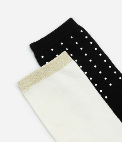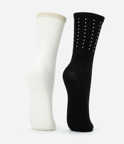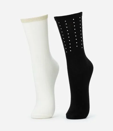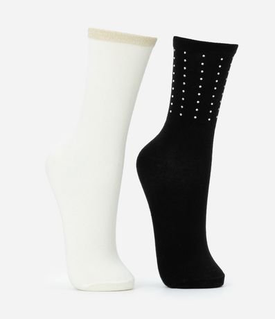 Kit 02 Meias Cano Alto em Algodão com Strass e Fio Metalizado