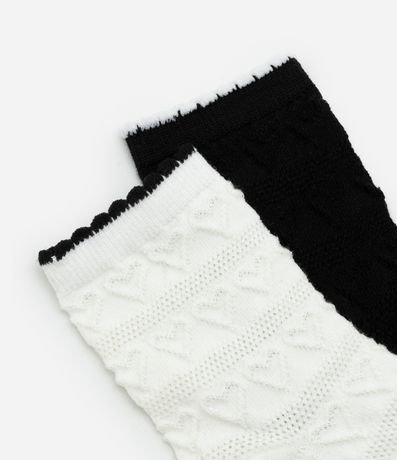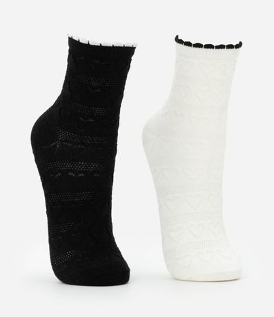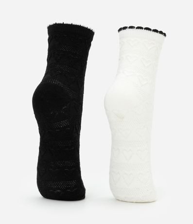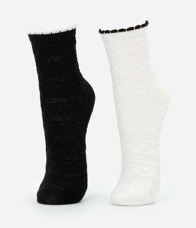 Kit com 02 meias cano médio em algodão com detalhe de coração em relevo.