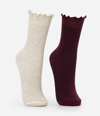 Ref: Kit com 02 pares de meias feminina confeccionadas em algodão mais sustentável. Possui cano médio com picot e embalagem presenteável.