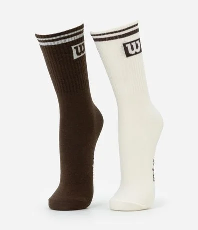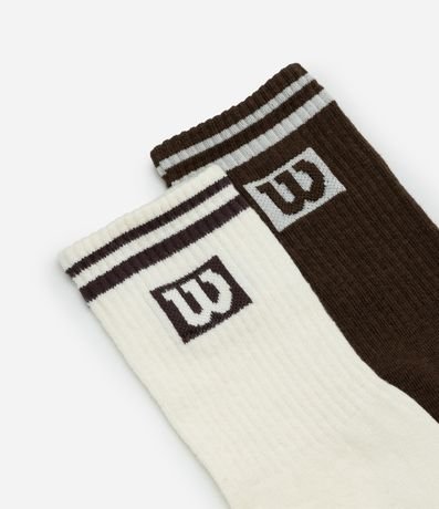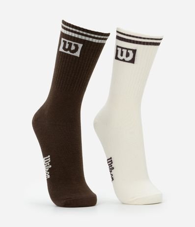 Ref: Kit com 02 pares de meias masculinas, de cano longo e canelado. Possuem estampa lettering e logo Wilson com listras na barra.
