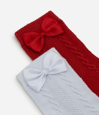 Ref: Kit com duas meias infantis confeccionadas em meia malha macia, com cano médio e textura delicada. Possuem laços aplicados na parte superior, garantindo charme e conforto para o dia a dia. Confeccionado em algodão certificado BCI e boas práticas ambientais.