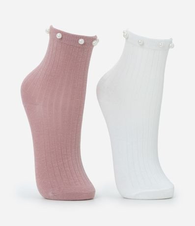 Kit 02 Meias Infantis Cano Médio com Pérola Artificial – Tam 22 a 34