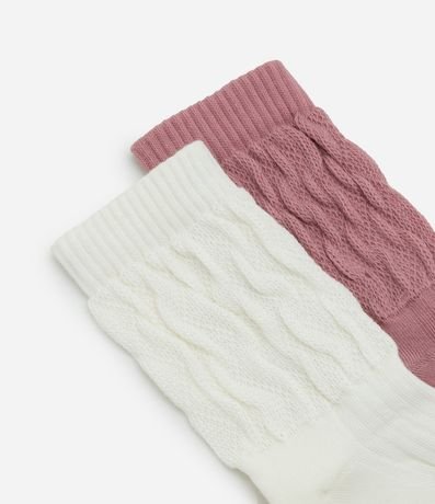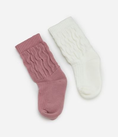 Kit com duas meias infantis de cano médio confeccionadas em malha de algodão com elastano para ajuste confortável. Design liso com textura trançada, ideal para compor looks casuais com praticidade e estilo. Confeccionado em algodão certificado BCI e boas práticas ambientais.