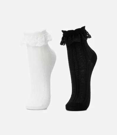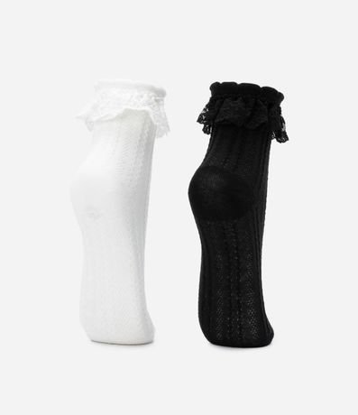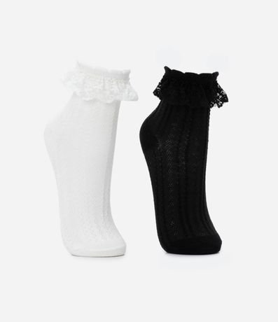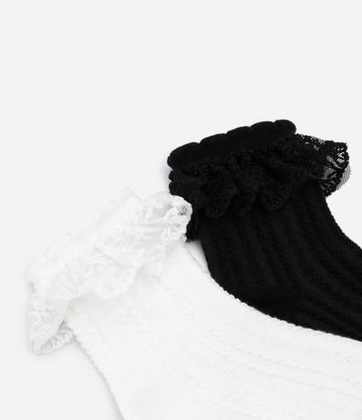 Ref: Kit com 02 pares de meias infantis, com cano curto com detalhe de babados dobradinhos em renda.