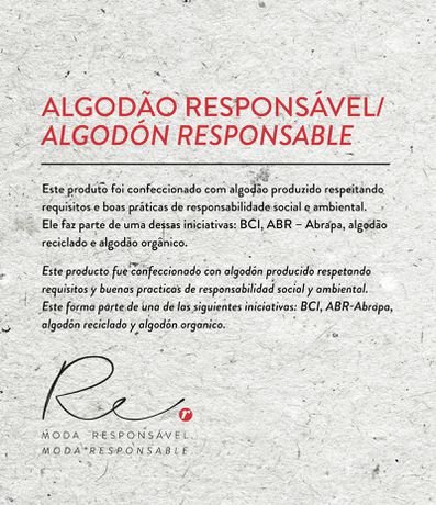 • Composição: 57% Algodão 36% Poliamida 05% Elastano 02% Outras Fibras