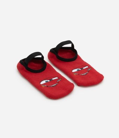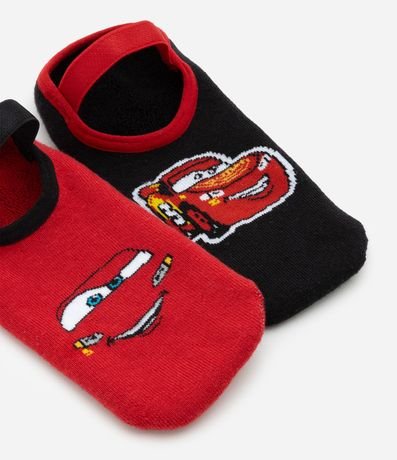 Ref: Kit com 02 meias infantis confeccionadas em algodão mais responsável, no modelo sapatilha, com elástico para sustentação, antiderrapante e estampa de Carros.