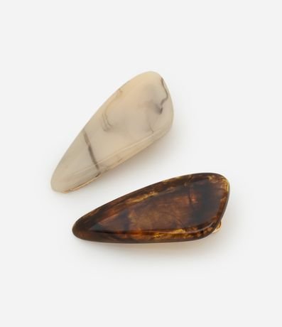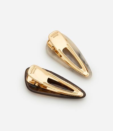 Ref: Kit com 02 presilhas femininas confeccionadas em acrílico. Possui formato triangular arredondado, combina neutralidade e elegância, sendo ideal para compor desde looks casuais até produções mais arrumadas, adicionando um toque de estilo com discrição e charme.
