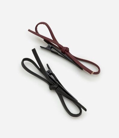 Kit de acessório de cabelo, sendo duas unidades de presilha com lacinho confeccionado em material sintético.