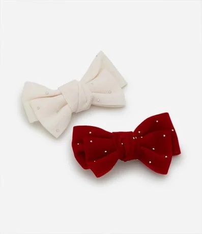 Kit 02 Presilhas de Cabelo Infantil em Formato de Laço com Brilhos - Tam Único