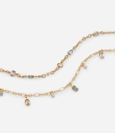 Kit com 2 pulseiras com fechamento lagosta, adornadas com strass e cristais artificiais.
