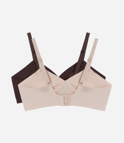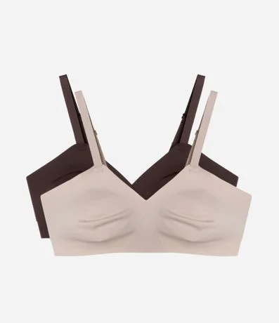 Kit com dois sutiãs de microfibra com alças reguláveis. As peças não têm bojo nem aro.