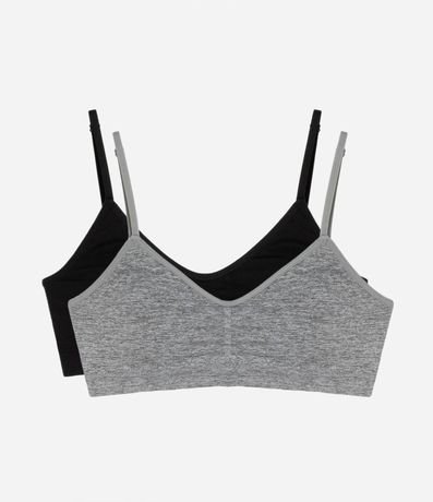 Ref: Kit com 02 sutiãs femininos confeccionados em poliamida seamless, sem bojo e com alças finas reguláveis.