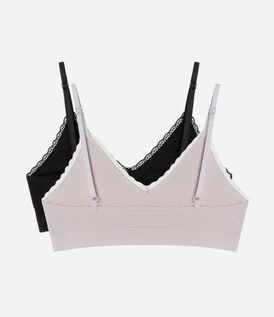 Ref: Kit com dois sutiãs confeccionados em poliamida com acabamento sealess. As peças tê bojo triangular, alças finas reguláveis e detalhe delicado de renda.