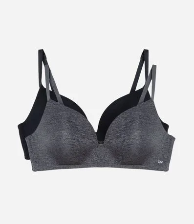 Ref: Kit com dois sutiãs básicos de microfibra. As peças têm bojo triangular e alças finas ajustáveis.