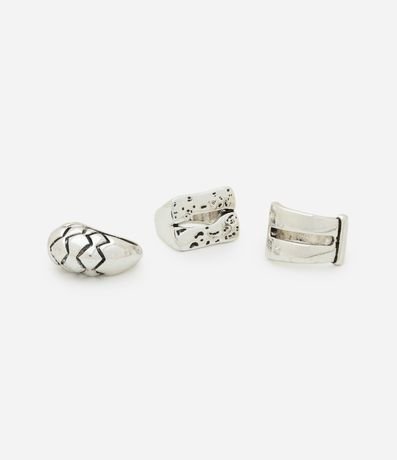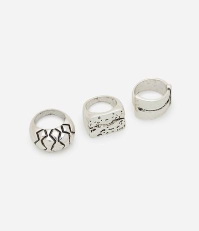 Kit 03 Anéis com Efeito Envelhecido e Textura