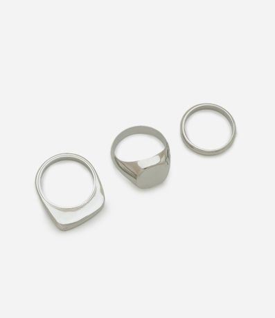 Kit com 03 anéis confeccionados em metal e com diferentes larguras.