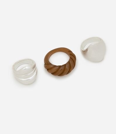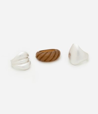 Ref: Kit com 3 anéis em banho níquel escovado: 1 modelo croissant e 2 em prata escovada.