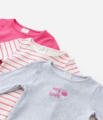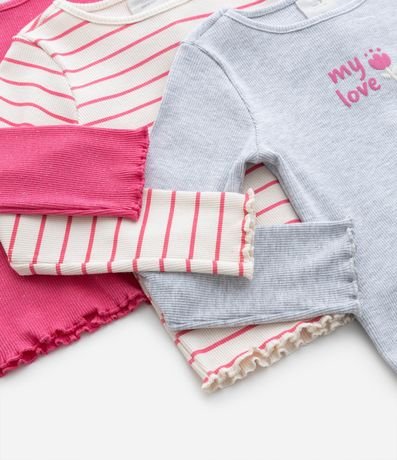 Ref: Kit 03 de blusinhas infantis confeccionadas em ribana com algodão certificado e melhores práticas ambientais, peças diversas com golinha redonda, manga longa.