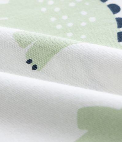 Ref: Kit com 03 bodies infantis confeccionados em cotton mais sustentável através de boas práticas ambientais, gola americana, manga curta, viés em ribana, fechamento no entrepernas. 01 peça canelada, e 02 peças possuem estampa de dinossauro.