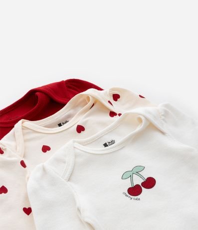 Kit 03 Bodies Infantis com Estampa Cerejinha e Coração - Tam RN a 18 meses