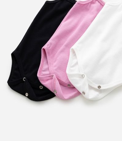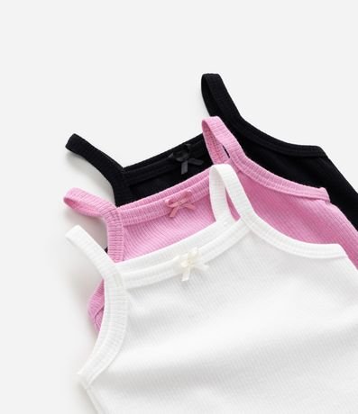 Ref: Kit com 03 bodies infantis para bebês, confeccionados em ribana de algodão e práticas mais sustentáveis. Possuem alças finas, lacinho no decote e fechamento no entrepernas, sem estampa.